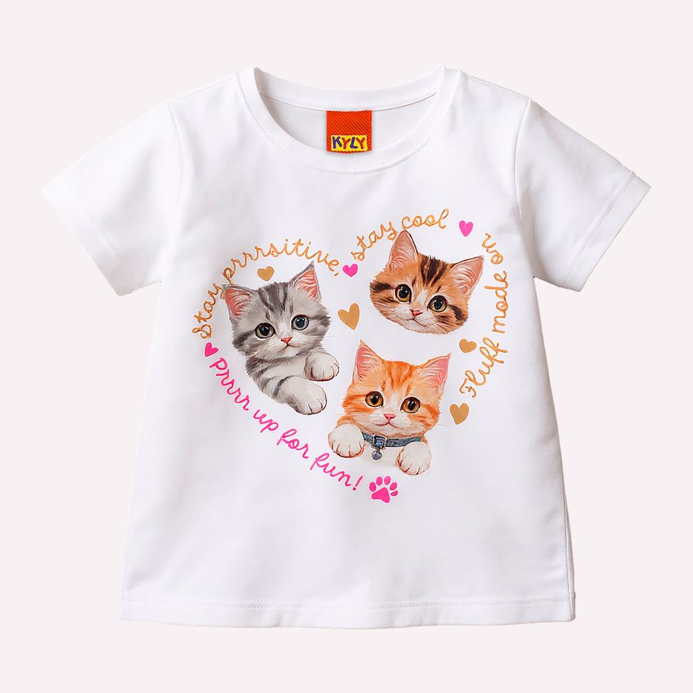 O destaque fica por conta da estampa frontal de gatinhos, rica em detalhes e expressĂ”es delicadas, combinada com lettering harmonioso e elementos lĂșdicos que trazem ainda mais doçura Ă peça. As mangas curtas e o acabamento cuidadoso reforçam a leveza e a sofisticação do design, tornando essa blusa uma escolha versĂĄtil para compor looks alegres e confortĂĄveis. Uma peça pensada com carinho, que une delicadeza, qualidade e o conforto que toda criança merece, finalizando o visual com um toque doce e encantador.
