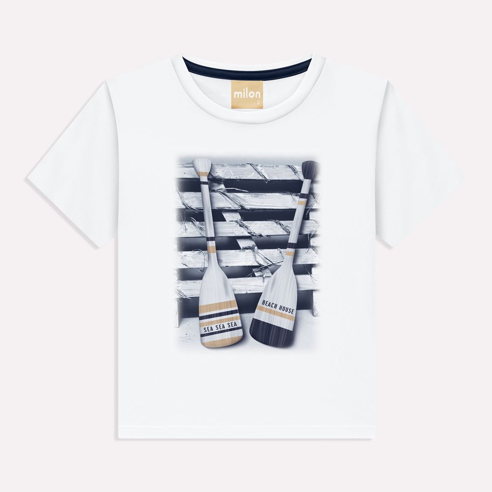 Com modelagem reta tradicional, a camiseta garante liberdade de movimento e um vestir confortável em todas as ocasiões. O grande destaque da peça é a estampa fotográfica central em tons neutros, que traz o tema náutico com remos decorados sobre fundo rústico. Versátil e atemporal, essa camiseta pode ser combinada com bermudas de sarja, jeans ou moletom leve para um look descontraído com atitude.