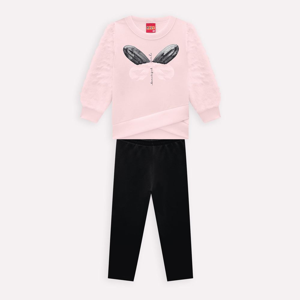 Perfeito para as pequenas que adoram brilho na medida certa e um visual cheio de estilo, o conjunto infantil menina Kyly une conforto, elegância e um toque lúdico em cada detalhe.
