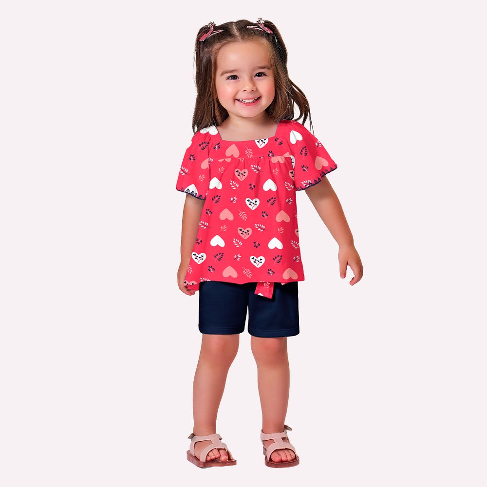 O conjunto infantil menina Kyly une delicadeza, conforto e um visual sofisticado, ideal para acompanhar a leveza e a doçura da infância. A bata é confeccionada em meia malha 100% algodão, com toque macio e agradável à pele. Sua modelagem soltinha garante caimento fluido e liberdade de movimentos, valorizada pelas mangas com acabamento em ponto concha, que acrescentam um detalhe delicado e elegante à peça. A estampa rotativa de corações cria um visual harmonioso e encantador, trazendo romantismo na medida certa.