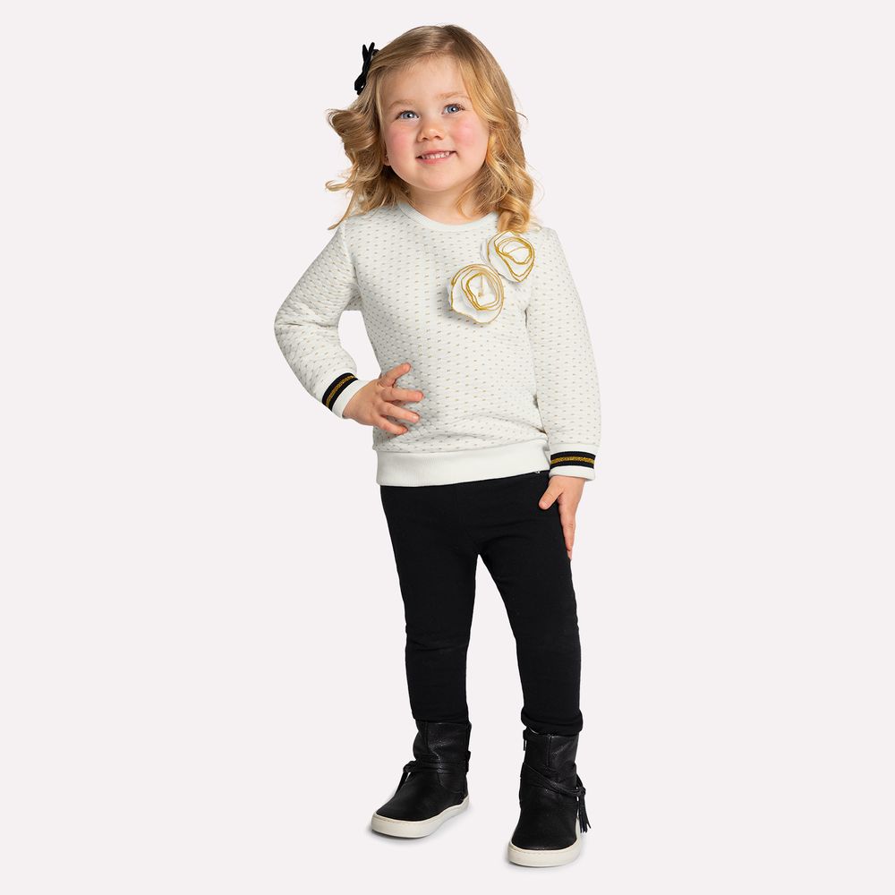A legging é confeccionada em molicotton peluciado 96% algodão e 4% elastano, garantindo um toque extremamente macio e conforto térmico para os dias mais frescos. A elasticidade do tecido permite liberdade total de movimentos, enquanto o cós com elástico na cintura assegura um ajuste confortável e seguro. Com visual básico e funcional, a legging equilibra perfeitamente o brilho do casaco, compondo um look harmônico e versátil. Uma escolha perfeita para meninas que adoram estar bem-vestidas em todos os momentos, com beleza e suavidade em cada detalhe.