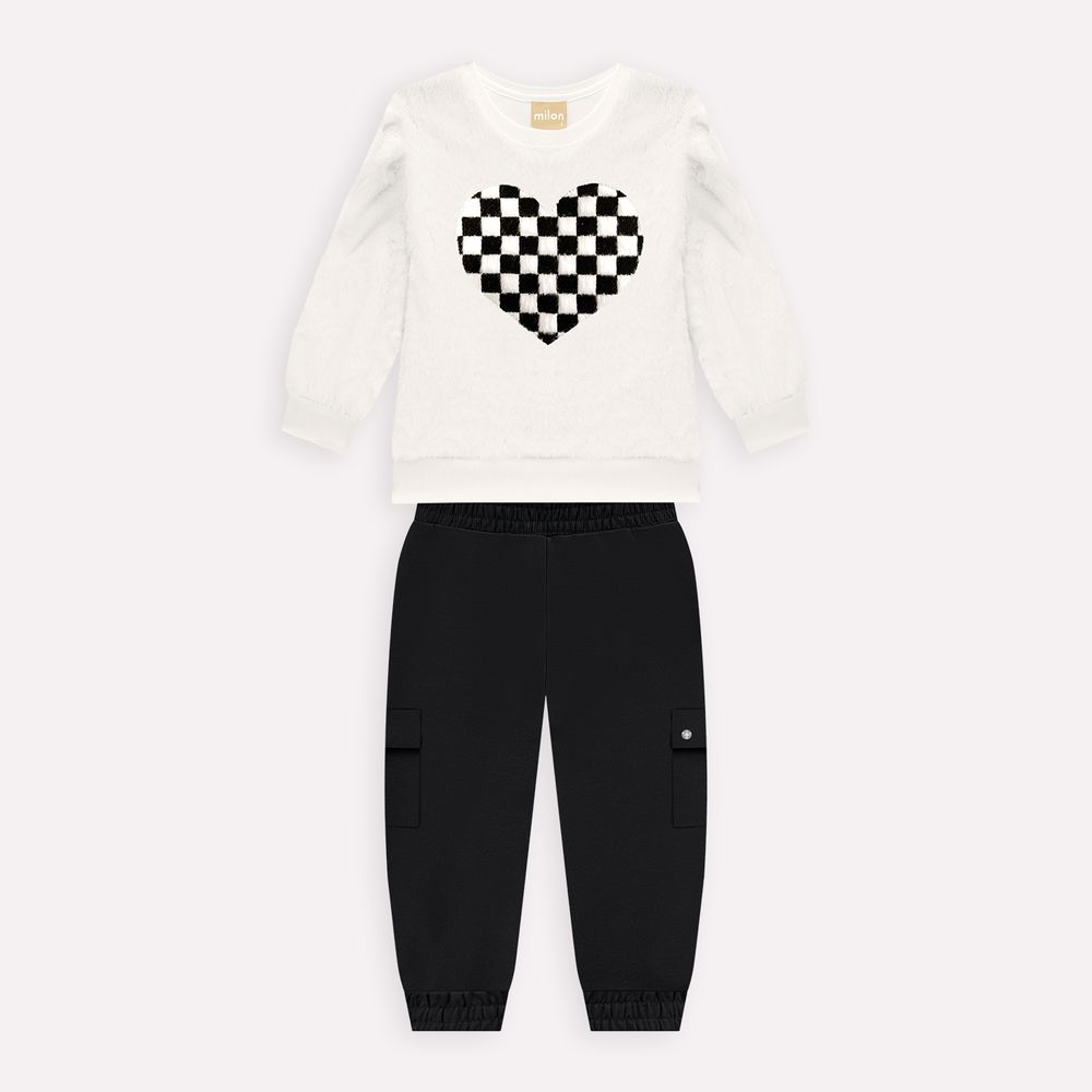 Complementando o conjunto, a calça é confeccionada em moletom peluciado 100% algodão, garantindo conforto térmico e liberdade de movimento para as atividades do dia a dia. Seu design prático inclui bolsos laterais aplicados nas pernas. O cós com elástico proporciona ajuste perfeito e autonomia ao vestir, facilitando a rotina com praticidade e segurança. Ideal para passeios, atividades cotidianas ou momentos em família, o conjunto traduz o equilíbrio entre conforto, delicadeza e modernidade, com a qualidade reconhecida da Milon. Uma escolha certeira para vestir as meninas com suavidade, estilo e aquele toque encantador que faz toda a diferença.