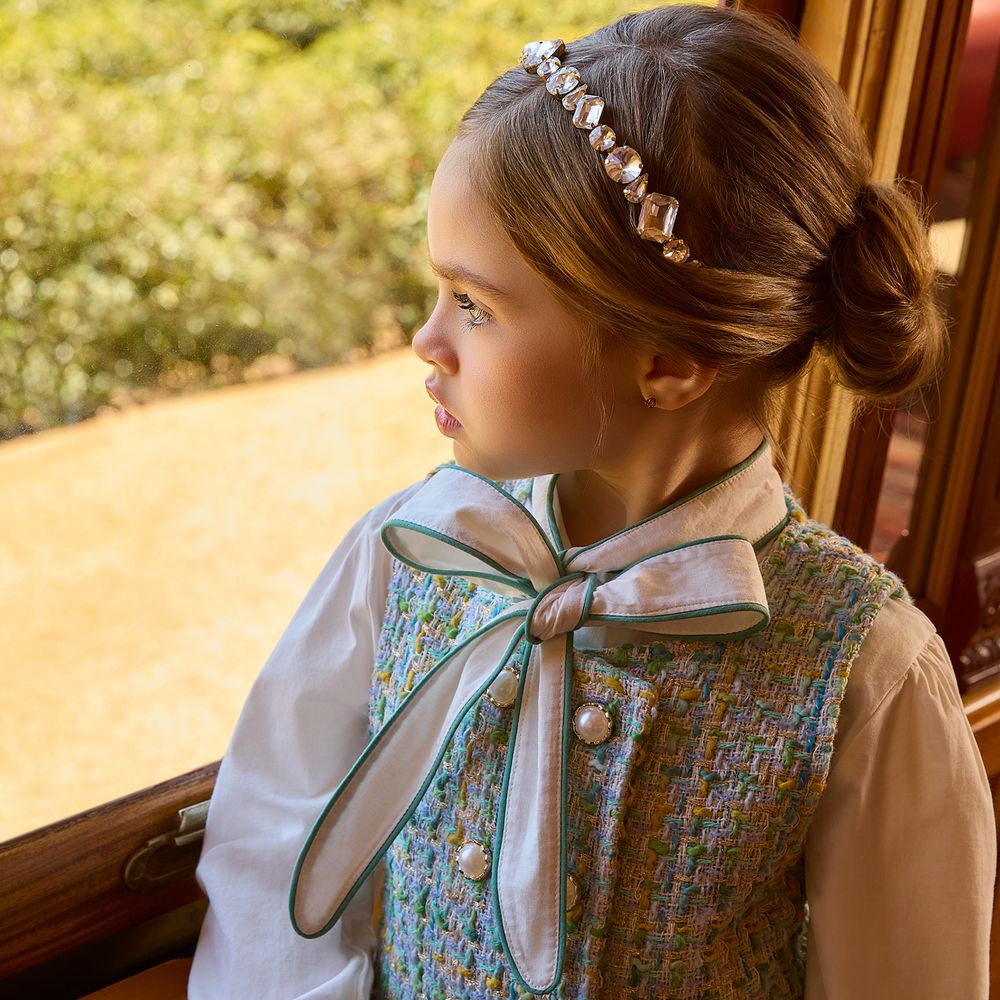 Um look clássico com toque contemporâneo que traduz elegância e delicadeza. Este conjunto infantil menina Milon é inspirado no tema Floresta Encantada e combina peças sofisticadas que deixam a produção encantadora para ocasiões especiais.