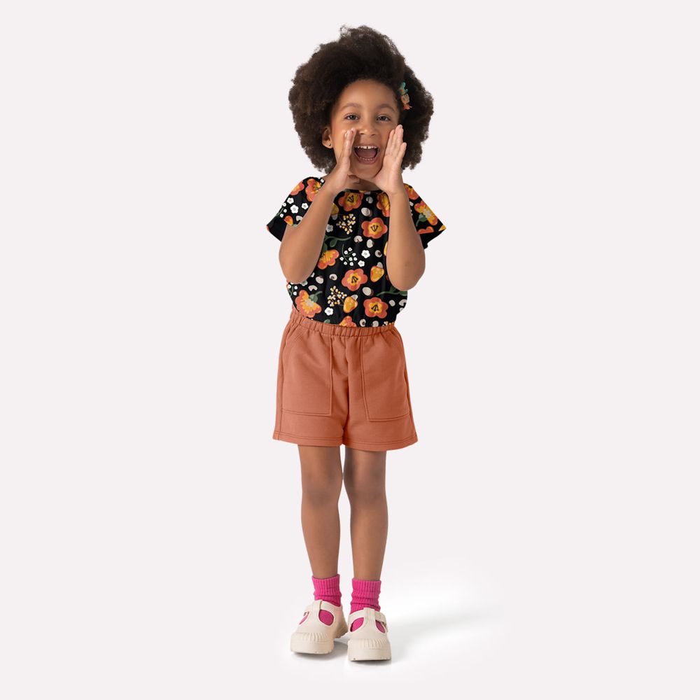 O short, em moletom sem felpa 100% algodão, combina leveza, conforto e praticidade. Embora seja sem estampa, os dois bolsos frontais trazem um charme especial ao design, além de serem funcionais. O cós com elástico oferece um ajuste perfeito, garantindo liberdade de movimento para as pequenas se divertirem à vontade.