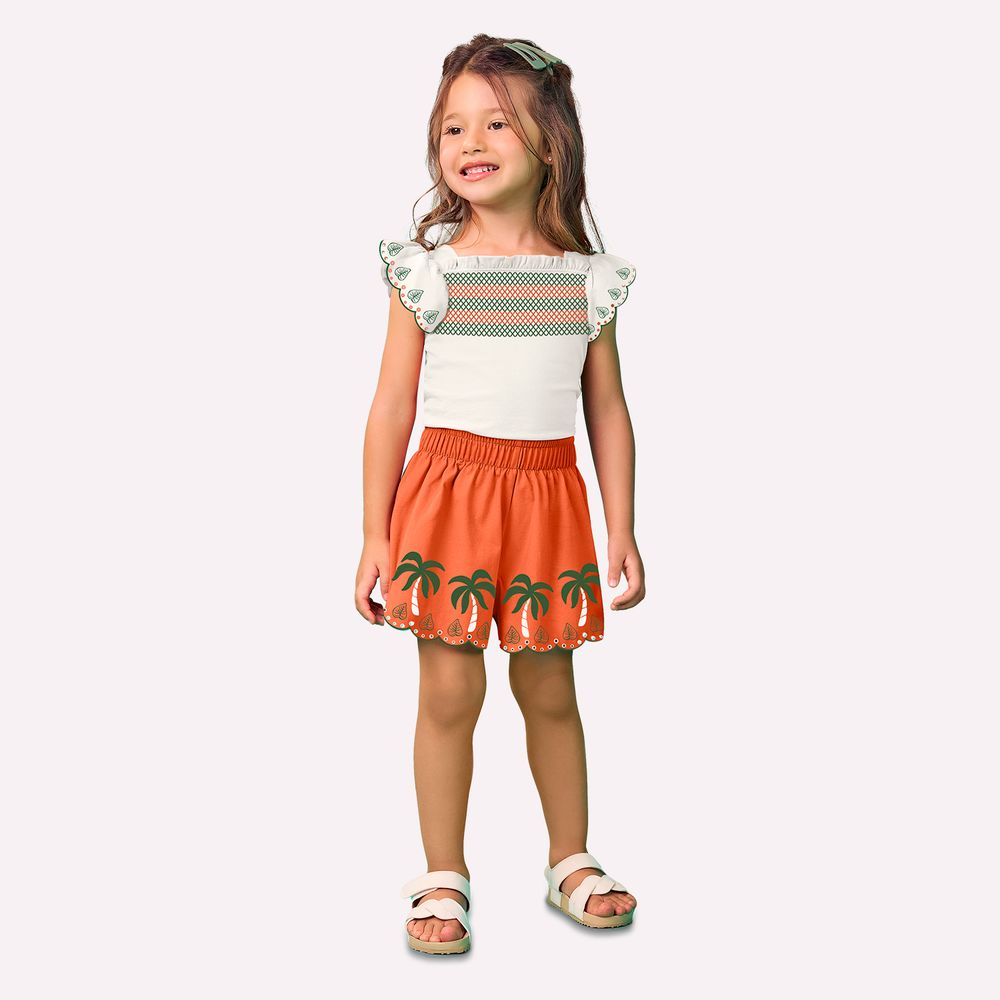 Conjunto infantil menina Nanai, confeccionado em meia malha 100% algodão, proporciona leveza, suavidade ao toque e excelente respirabilidade para os dias mais quentes. A modelagem ampla do conjunto oferece liberdade de movimento e um caimento solto e confortável, ideal para acompanhar a rotina ativa das meninas com frescor e estilo.