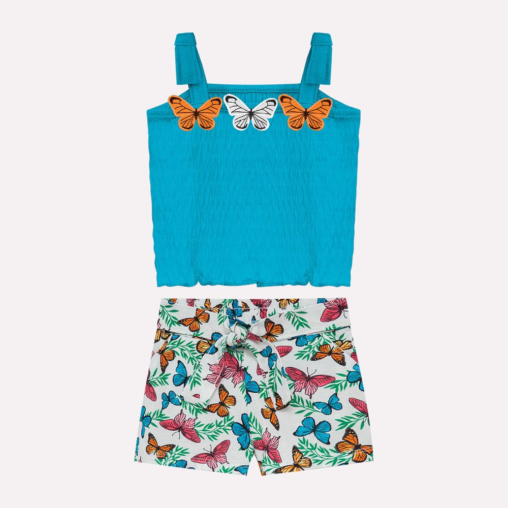 O short, em meia malha 100% algodão, completa o look com leveza e movimento. Ele apresenta cós com amarração frontal e laço decorativo, além de bolsos funcionais, que adicionam praticidade sem abrir mão do estilo. A estampa rotativa de borboletas traz cores vibrantes e um toque de fantasia que encanta. Um conjunto sofisticado e divertido, perfeito para meninas que adoram brincar com estilo e espalhar leveza por onde passam!