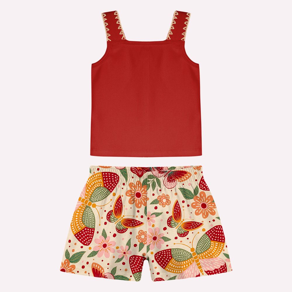 O short é produzido em meia malha 100% algodão, proporcionando leveza, respirabilidade e bem-estar durante o uso. A estampa rotativa de bichinhos e borboletas aparece de forma harmoniosa, trazendo alegria e um visual lúdico sem perder a sofisticação. O caimento confortável permite liberdade total de movimento, acompanhando as brincadeiras com suavidade. Um conjunto versátil, encantador e perfeito para compor looks cheios de personalidade.