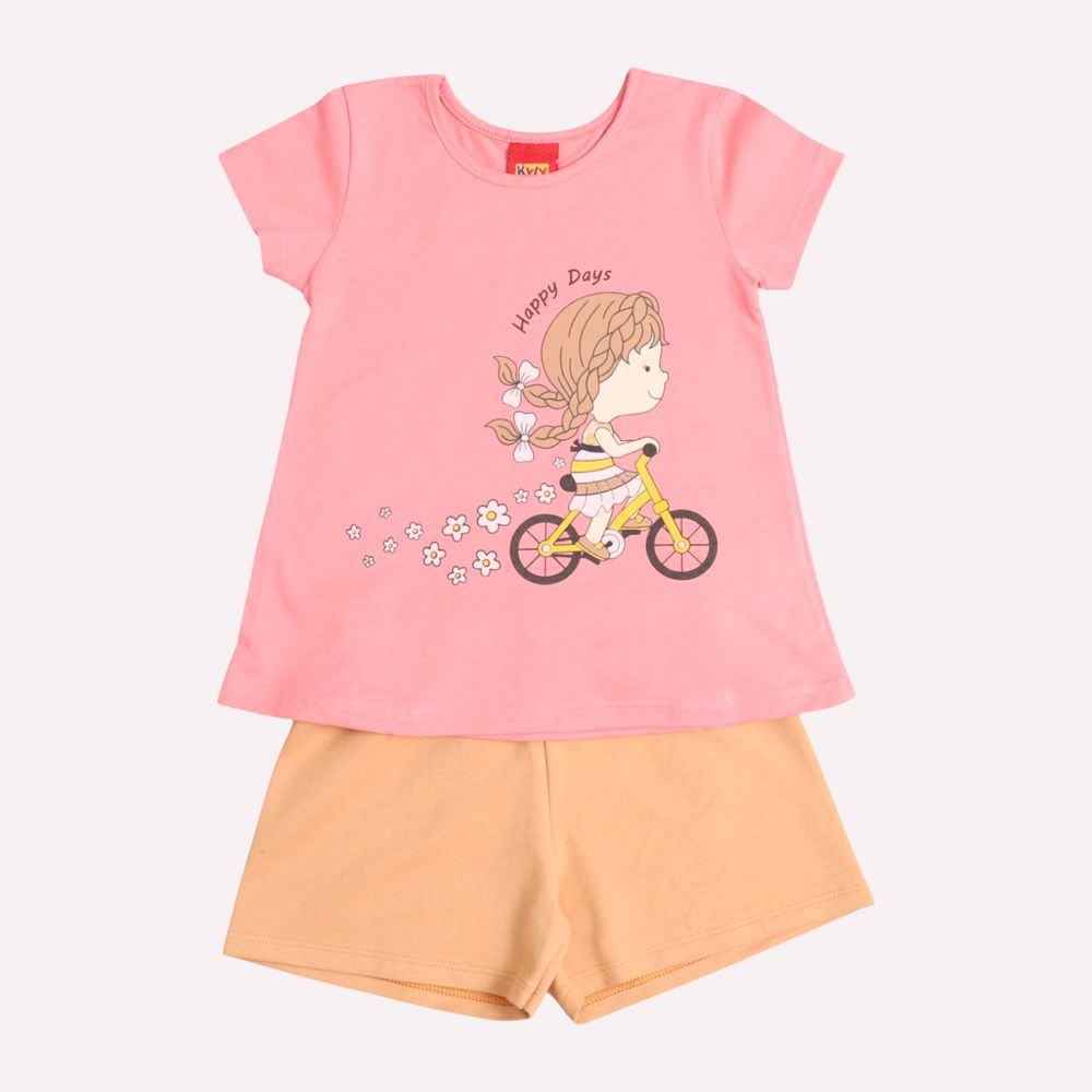 Diversão sobre duas rodas! O conjunto infantil menina Kyly conta com blusa confeccionada em malha 100% algodão, trazendo estampa de menina andando de bicicleta, que traduz leveza, movimento e a alegria da infância. O toque macio da malha proporciona conforto durante todo o dia, enquanto a modelagem soltinha garante liberdade para brincar e explorar, além disso, exibe decote redondo e mangas curtas.