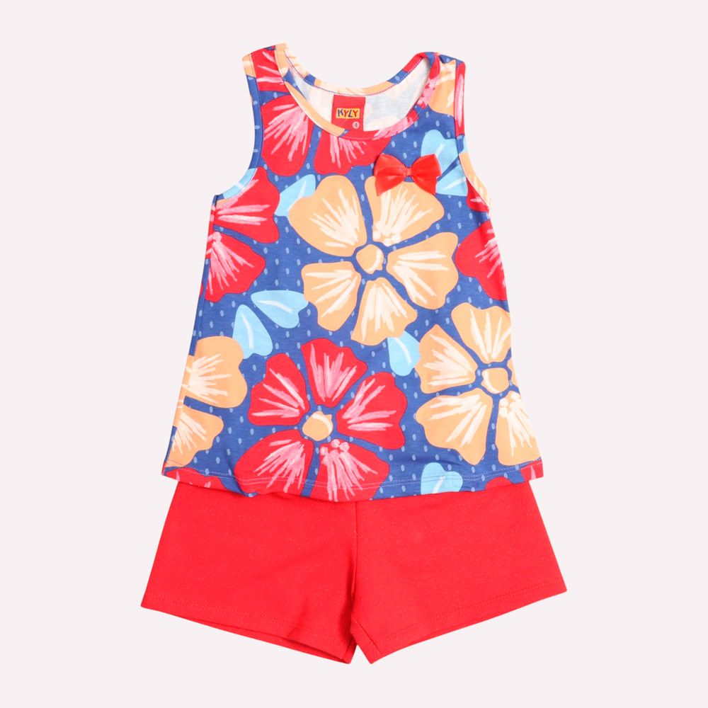 Um charme cheio de frescor! O conjunto infantil menina Kyly é confeccionada em malha 100% algodão, com modelagem godê e estampa vibrante de flores que transmite delicadeza. A peça é confortável, com decote redondo e decote nadador na parte posterior, além disso, apresenta laço decorativo próximo ao tórax. Perfeita para os dias de calor, garantindo bem-estar durante as brincadeiras.