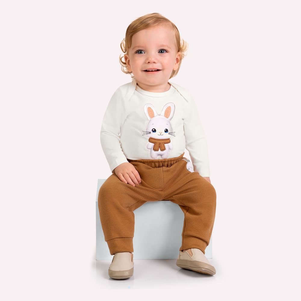 Delicado e cheio de ternura, este conjunto bebê menino da Kyly é perfeito para envolver os pequenos em conforto e suavidade. Com inspiração no universo lúdico da Páscoa, a combinação traz detalhes encantadores que tornam o visual ainda mais especial para os primeiros momentos da infância.