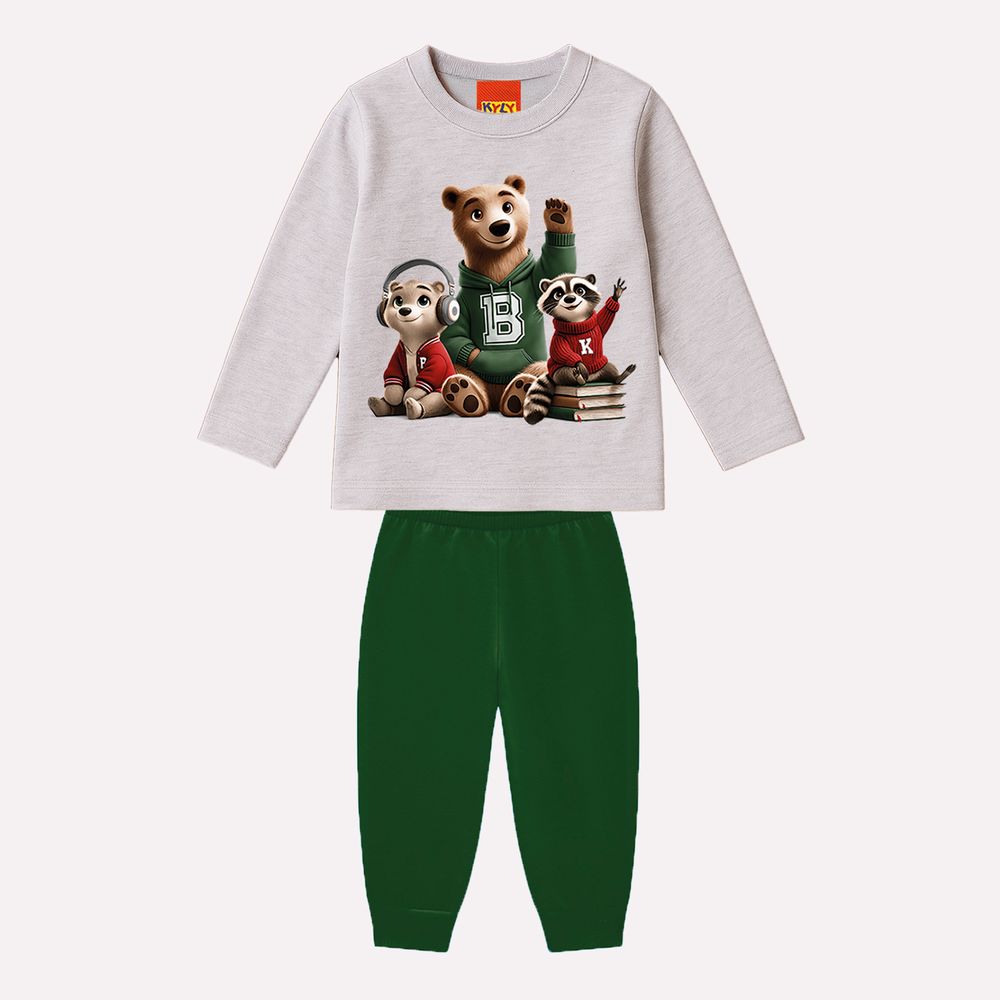 Um convite à fofura e ao conforto para acompanhar os pequenos em todos os momentos. Este conjunto infantil menino da Kyly traz um visual encantador com inspiração no universo lúdico e um toque colegial, perfeito para deixar o dia a dia ainda mais especial.