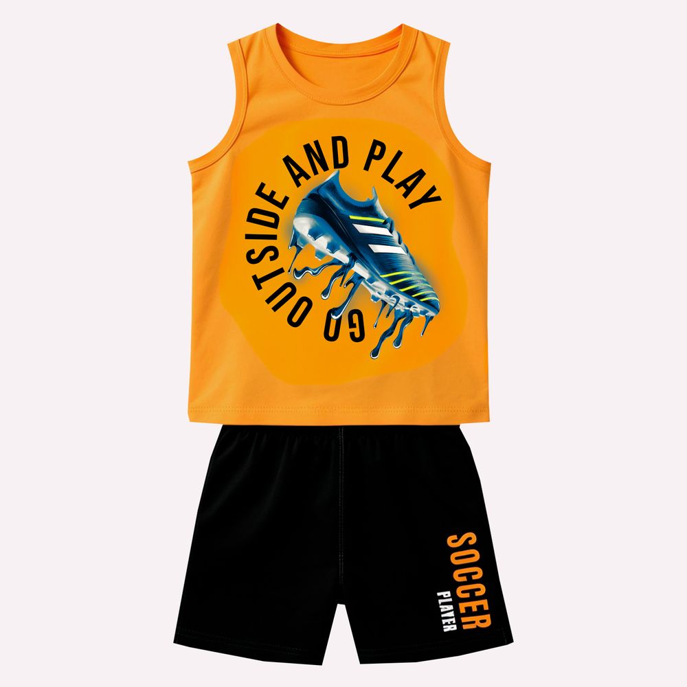 O conjunto infantil menino Kyly foi criado para acompanhar os pequenos com conforto e um visual moderno, ideal para o dia a dia cheio de atitude. A regata é confeccionada em meia malha 100% algodão, oferecendo toque macio, leveza e excelente respirabilidade. Sua modelagem confortável apresenta cavas bem estruturadas e caimento soltinho, garantindo liberdade total de movimentos. A estampa de chuteira com lettering traz um visual esportivo e atual, aplicada de forma equilibrada, mantendo a delicadeza e o acabamento refinado da peça.