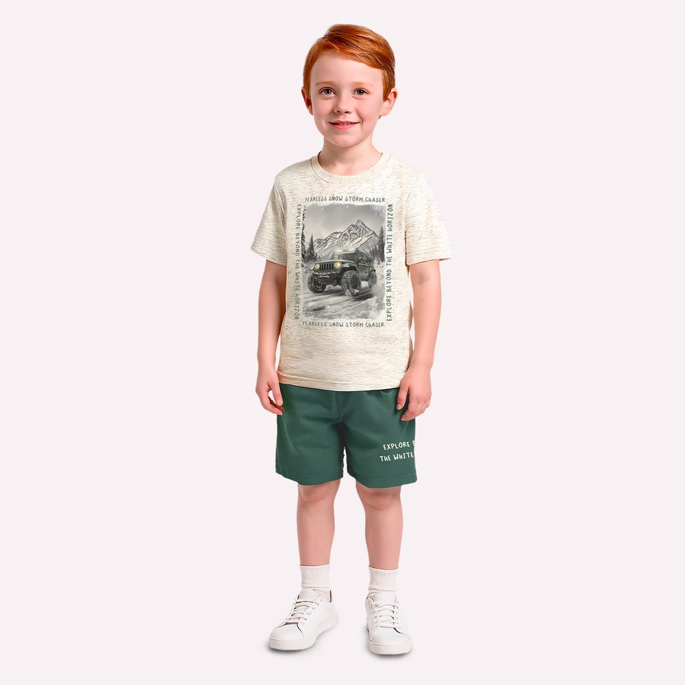 A bermuda complementa o conjunto com suavidade e praticidade. Produzida em moletom sem felpa 100% algodão, possui textura leve e agradável ao toque. Sua modelagem confortável conta com cós elástico, proporcionando ajuste delicado ao corpo e acompanhando as brincadeiras com total liberdade. Um conjunto pensado nos mínimos detalhes, que combina conforto, delicadeza e um estilo moderno, perfeito para vestir o menino com charme e bem-estar.