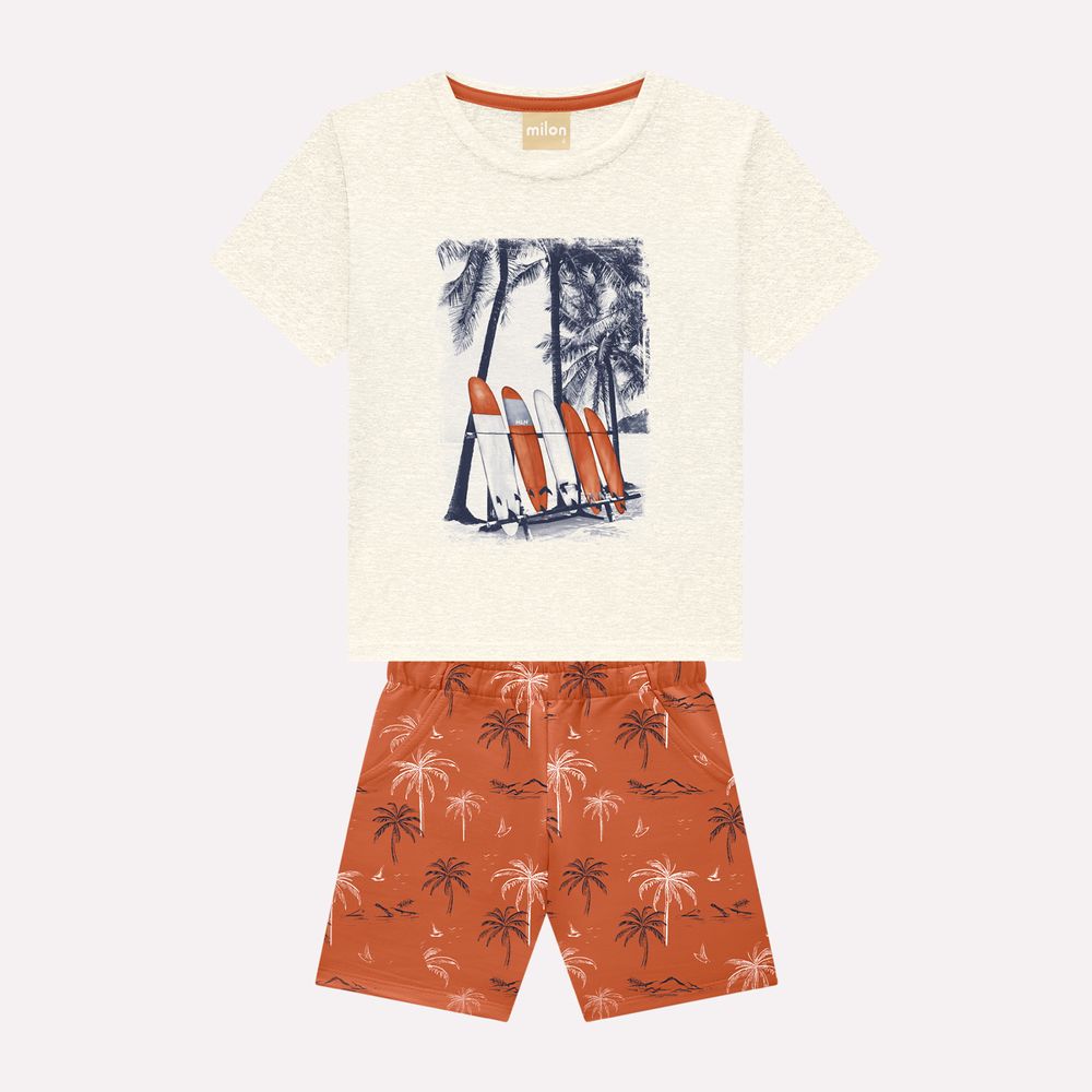 O conjunto infantil menino Milon é perfeito para trazer leveza e estilo aos dias de sol, inspirado no universo praiano com um visual moderno, divertido e confortável.