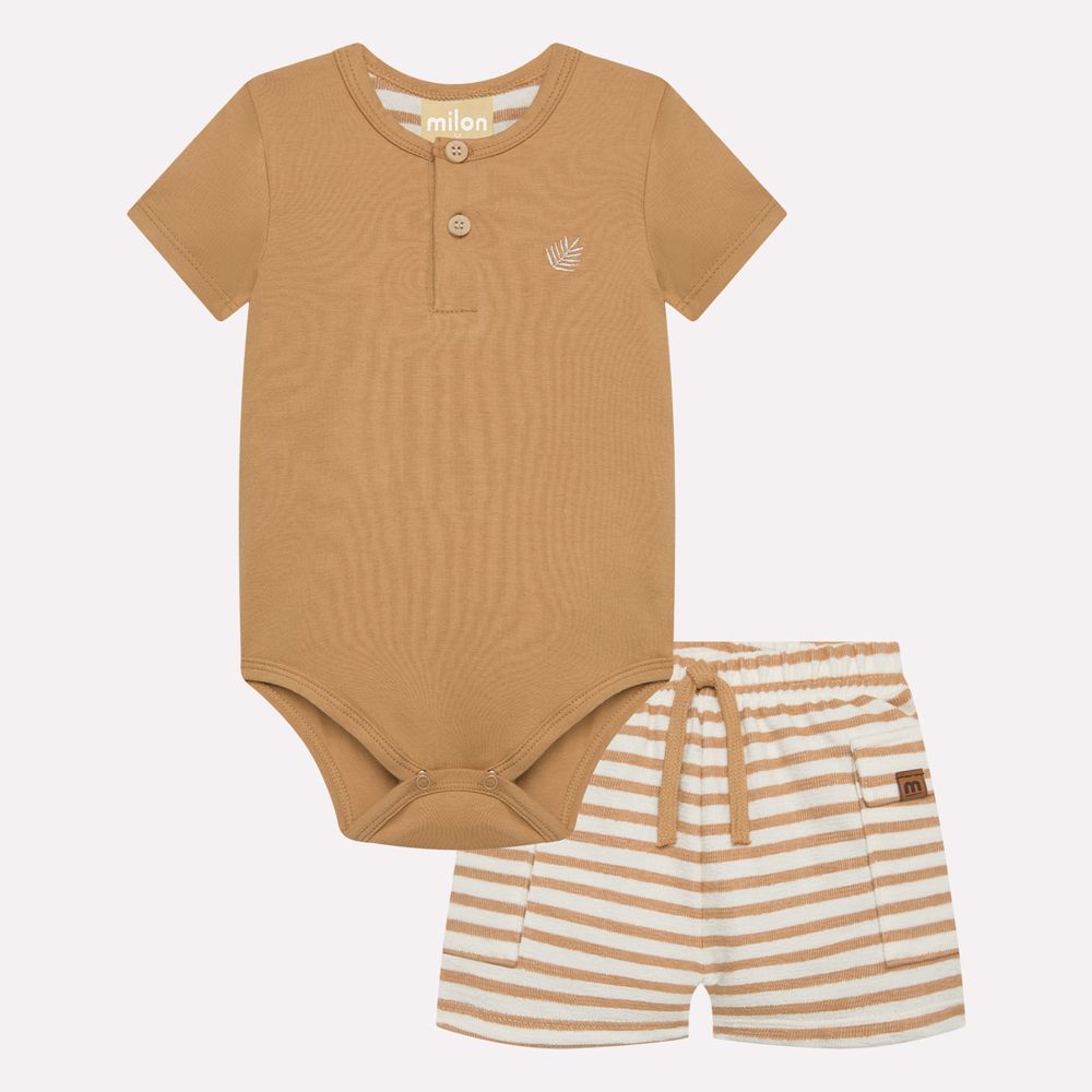 Puro encanto e conforto para o dia a dia do seu pequeno! O conjunto bebê menino Milon foi criado para vestir com praticidade e muito charme, trazendo um visual delicado e elegante.