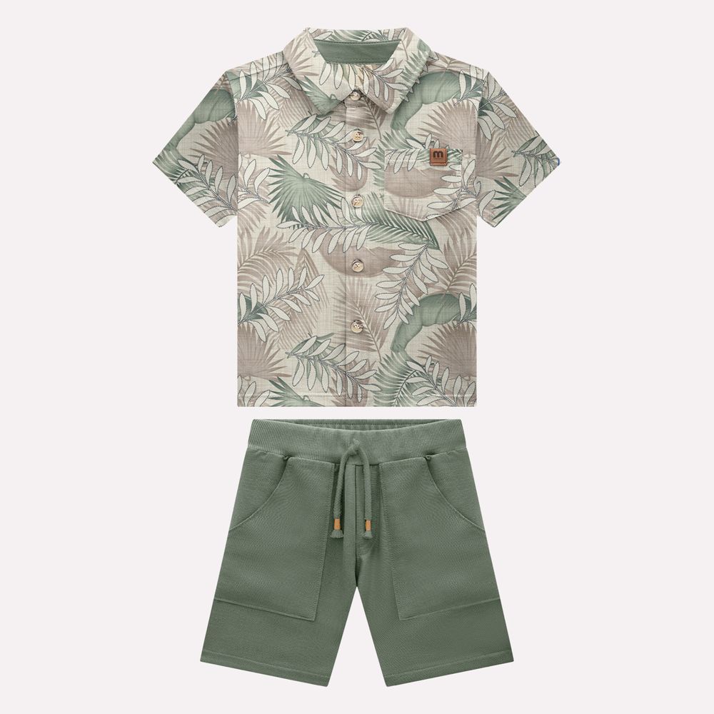 O conjunto infantil menino Milon é um look cheio de frescor e estilo. A camisa em meia malha 100% algodão é leve e macia, garantindo bem-estar durante todo o uso. Seu diferencial está na estampa rotativa de folhagens, que cria um visual moderno e tropical, além do bolso frontal funcional que adiciona charme e praticidade. A modelagem com gola e botões frontais proporciona um ar arrumadinho sem perder a leveza.