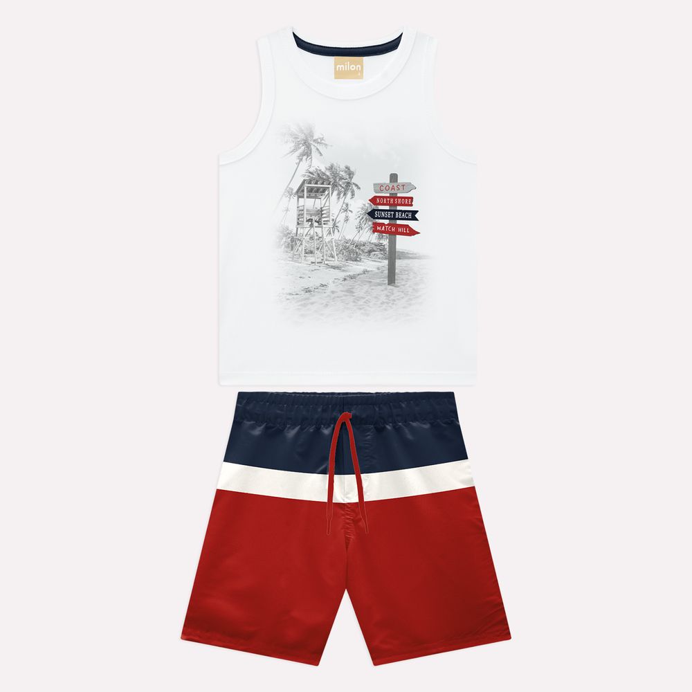 Um look cheio de estilo e frescor para os dias de sol! O conjunto infantil menino Milon traz o charme do clima praiano em uma combinação leve e confortável, perfeita para os pequenos aproveitarem cada momento com liberdade.