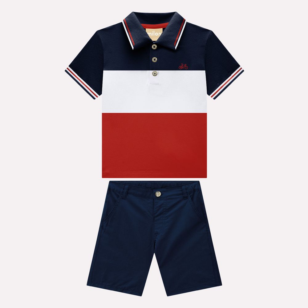 O conjunto infantil menino Milon foi desenvolvido para ocasiões especiais e momentos em família, esse conjunto combina sofisticação e conforto em cada detalhe. A camisa polo em piquet 96% algodão e 4% elastano possui modelagem tradicional com gola e abotoamento frontal, garantindo um visual elegante e moderno. O destaque fica para o bordado delicado, que adiciona um toque refinado e exclusivo à peça, enquanto as combinações de cores tornam o look ainda mais especial.