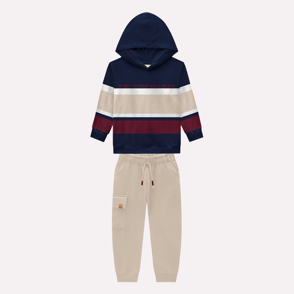 A calça complementa o conjunto com modelagem confortável, cós elástico e cordão decorativo que facilita o ajuste. O modelo conta ainda com bolso lateral utilitário, trazendo um detalhe moderno e funcional ao look. Versátil e cheio de estilo, o conjunto infantil menino Milon é ideal para compor produções casuais confortáveis para os dias mais fresquinhos.