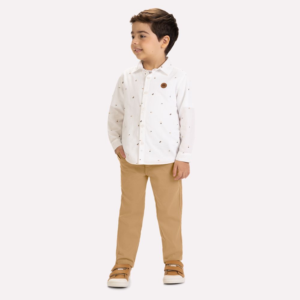 A calça em sarja, composta por 97% algodão e 3% elastano, oferece excelente caimento e liberdade de movimento. O modelo acompanha cinto, que complementa o look com um toque moderno e elegante, ideal para composições mais alinhadas. Versátil e sofisticado, o conjunto infantil menino Milon é uma ótima escolha para festas, eventos especiais ou momentos em que os pequenos merecem um visual cheio de charme.