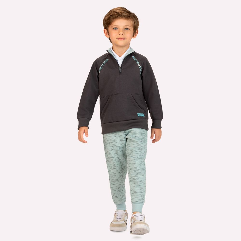 Confortável e cheio de estilo, este conjunto infantil menino Milon é perfeito para acompanhar os pequenos em dias de aventura e diversão. Com inspiração esportiva e visual moderno, ele combina praticidade e aconchego para o dia a dia.