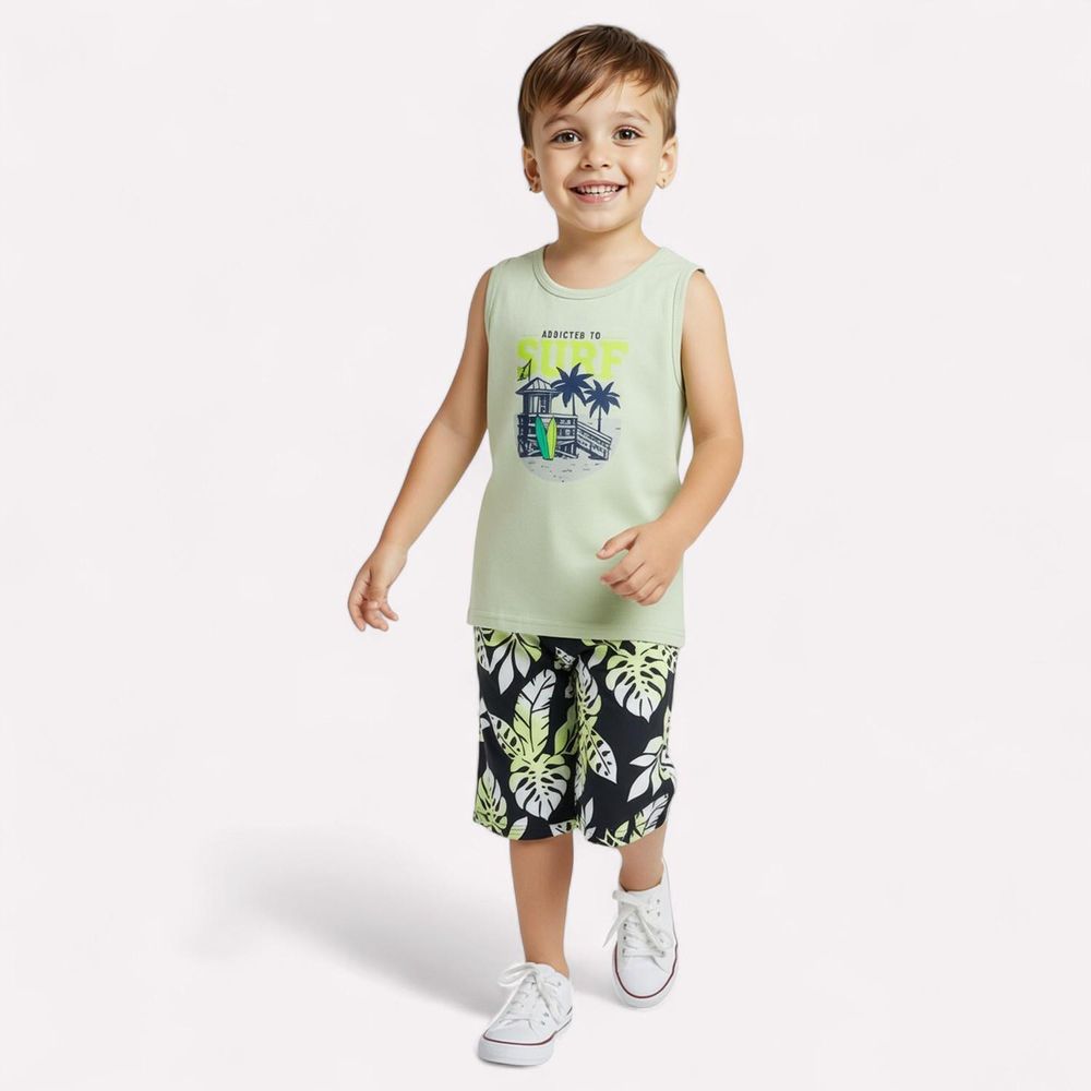 O conjunto infantil menino Kyly é moderno e descontraído com estampas tropicais reforçam o espírito praiano da coleção.