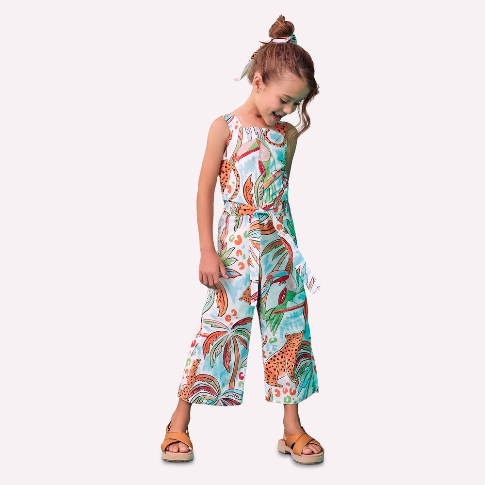 O destaque está na estampa exclusiva inspirada na natureza, com elementos tropicais e tons vibrantes que remetem à fauna e flora de forma lúdica e elegante. Detalhes como o recorte nas costas completam o visual com originalidade. Perfeito para ocasiões casuais ou momentos especiais, esse macacão é uma escolha prática e cheia de atitude para meninas que gostam de se vestir bem, com autenticidade e conforto.