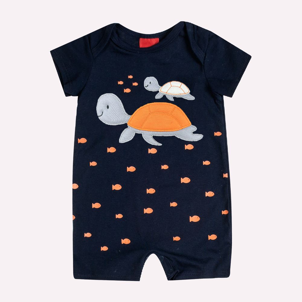 O grande destaque fica por conta do bordado encantador de tartarugas, que adiciona um toque artesanal e sofisticado à peça. A composição visual se completa com uma estampa localizada de peixinhos, criando um cenário subaquático lúdico e acolhedor, que transforma o look em um verdadeiro mergulho de fofura. Ideal para passeios, sonecas ou momentos especiais em família, este macaquinho une conforto, praticidade e um visual irresistível para os primeiros meses de vida do bebê.