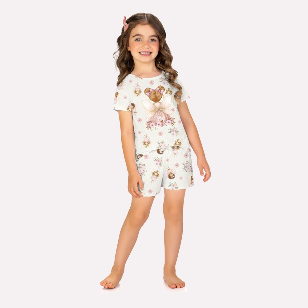 O short estampado com fadas e flores em harmonia com a blusa, conta com cós elástico confortável e modelagem soltinha, ideal para noites tranquilas, garantindo liberdade de movimentos durante o sono. Com cores suaves e detalhes encantadores, o conjunto transmite leveza e fantasia, tornando a hora de dormir um verdadeiro conto de fadas. Com o pijama Milon, cada noite se transforma em uma aventura mágica, cheia de conforto, estilo e brilho especial.