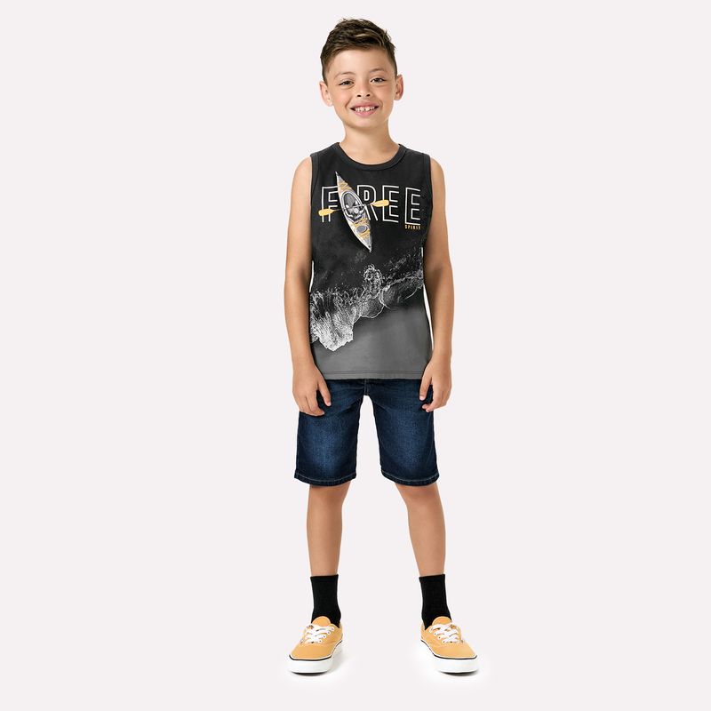 Cheia de atitude e perfeita para os dias de sol, a regata infantil menino Kyly é confeccionada em meia malha 100% algodão, garantindo toque macio, frescor e respirabilidade para acompanhar a rotina com máximo conforto. Sua modelagem reta proporciona caimento leve e liberdade total aos movimentos, ideal para brincar, correr e explorar.