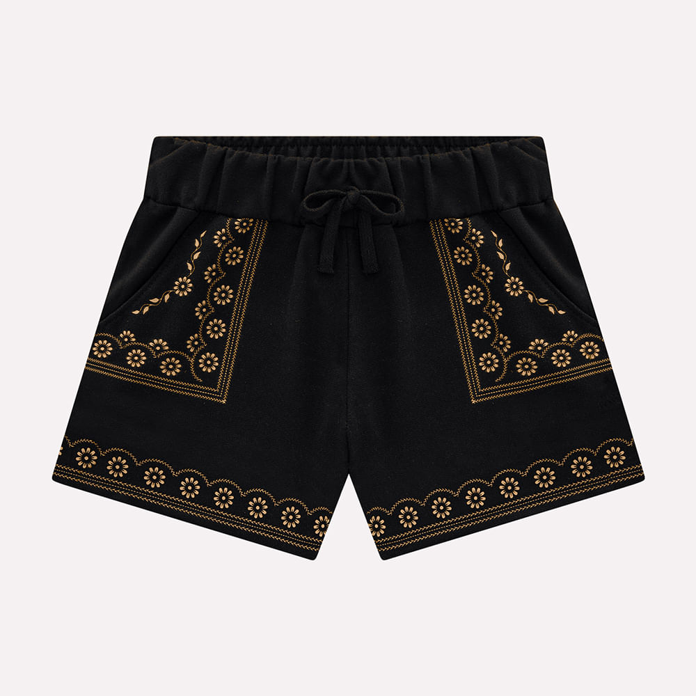 Delicado e superconfortável, o short infantil menina Milon é a escolha perfeita para compor looks cheios de charme para a sua menina! Confeccionado em moletinho 100% algodão, ele garante maciez, frescor e leveza, acompanhando o dia a dia com bem-estar. O destaque fica para a estampa, com detalhes que contrastam lindamente, trazendo um toque romântico e sofisticado. A modelagem soltinha com cós em elástico e cordão decorativo oferece ajuste prático e confortável, além de valorizar ainda mais o visual.
