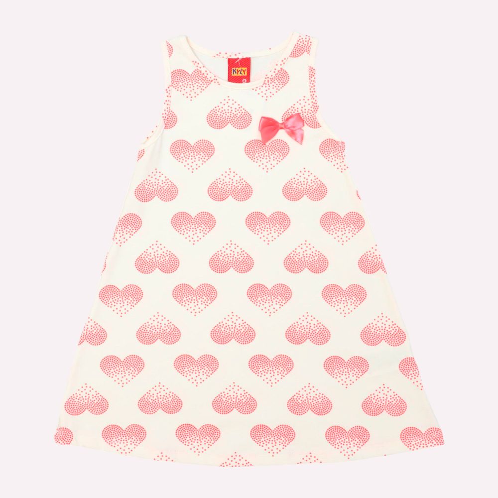 O vestido infantil Kyly Coração é feito em meia malha macia, com composição de 95% algodão e 5% elastano, proporcionando conforto e um caimento perfeito.