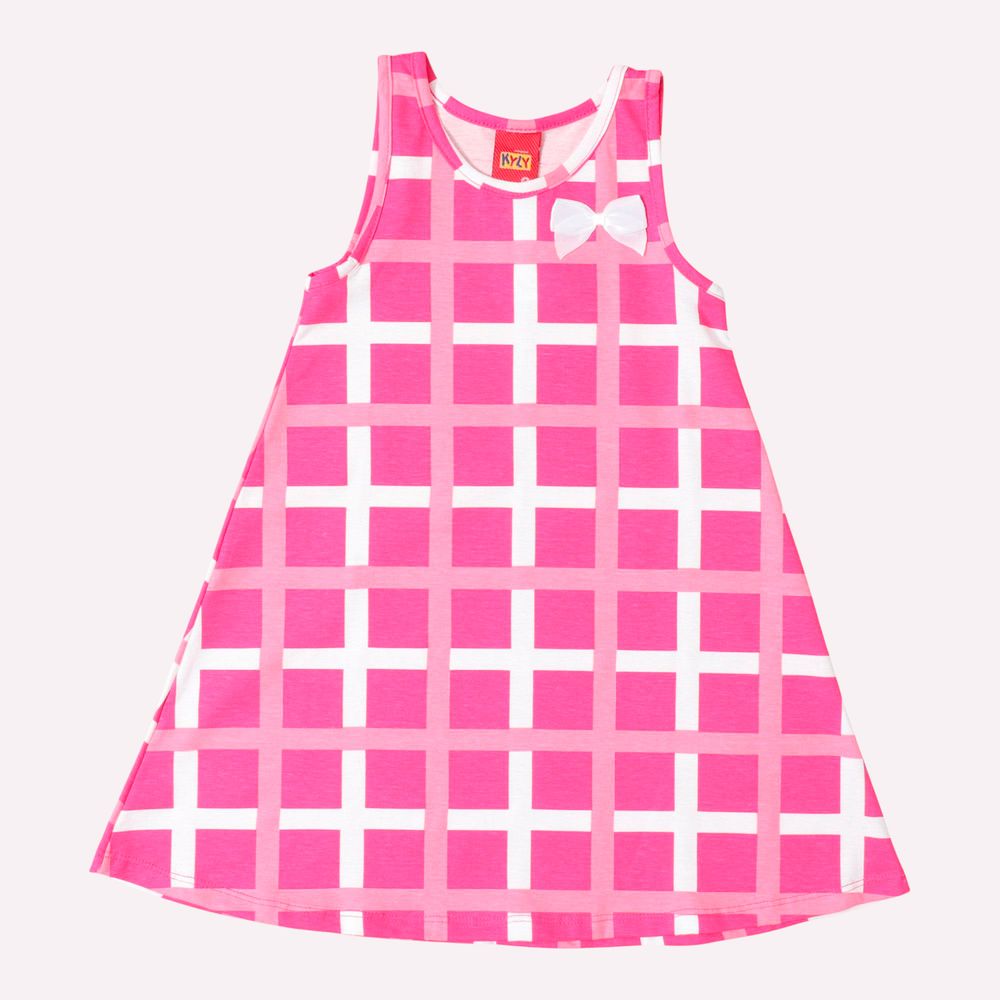 A estampa de xadrez colorida traz modernidade e estilo, enquanto o detalhe de laço aplicado completa o visual com fofura.Perfeito para qualquer ocasião, este vestido possui caimento leve, ideal para o dia a dia ensolarado da nova estação.