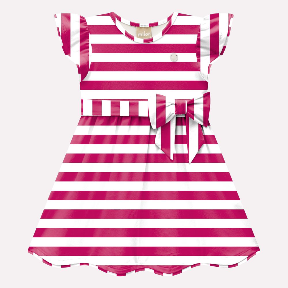 A estampa rotativa de listras confere um visual alegre e moderno, e o destaque especial vai para o lindo laço frontal, que adiciona um toque de sofisticação e feminilidade ao look. A plaquinha Milon dá o acabamento refinado característico da marca, tornando a peça ainda mais especial. Um vestido perfeito para passeios, festas ou momentos em família, com o conforto, elegância e a delicadeza que só a Milon sabe traduzir em cada detalhe!