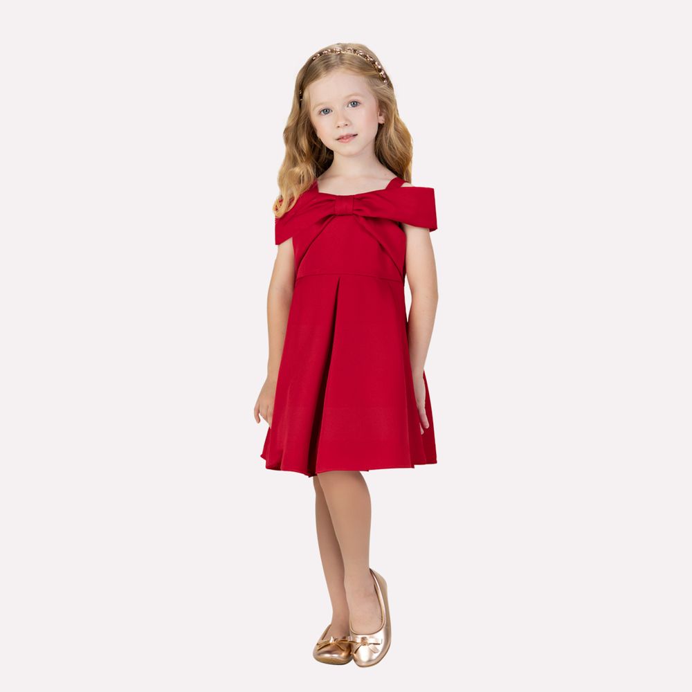 Um modelo digno de princesa para momentos especiais! O vestido infantil menina Milon é confeccionado em bielástico 95% poliéster e 5% elastano, com forro em 100% algodão e delicadas camadas de tule 100% poliéster, garantindo estrutura, conforto e movimento elegante. O grande destaque está no laço volumoso que envolve o decote, um detalhe sofisticado que rouba a cena e transforma a peça. O busto possui alcinhas delicadas e acabamento limpo, enquanto a cintura marcada valoriza a silhueta infantil com muito charme.