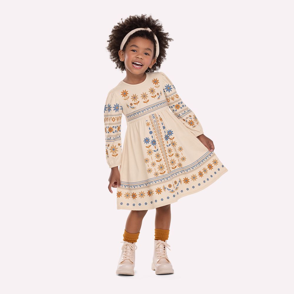 O vestido infantil menina Nanai é a escolha perfeita para iluminar os momentos especiais com elegância e suavidade, traduzindo charme em uma peça confortável e sofisticada. Confeccionado em cotton com 95% algodão e 5% elastano, o modelo oferece toque macio, elasticidade suave e excelente ajuste ao corpo. A presença do elastano garante liberdade de movimento, enquanto o algodão proporciona respirabilidade e conforto prolongado para o dia a dia. A modelagem levemente evasê valoriza o caimento, criando fluidez e movimento natural. O recorte na altura do busto conta com franzidos sutis que ampliam delicadamente a parte inferior da peça, formando uma silhueta graciosa e equilibrada. As mangas longas possuem leve volume e acabamento ajustado nos punhos, agregando elegância ao visual.