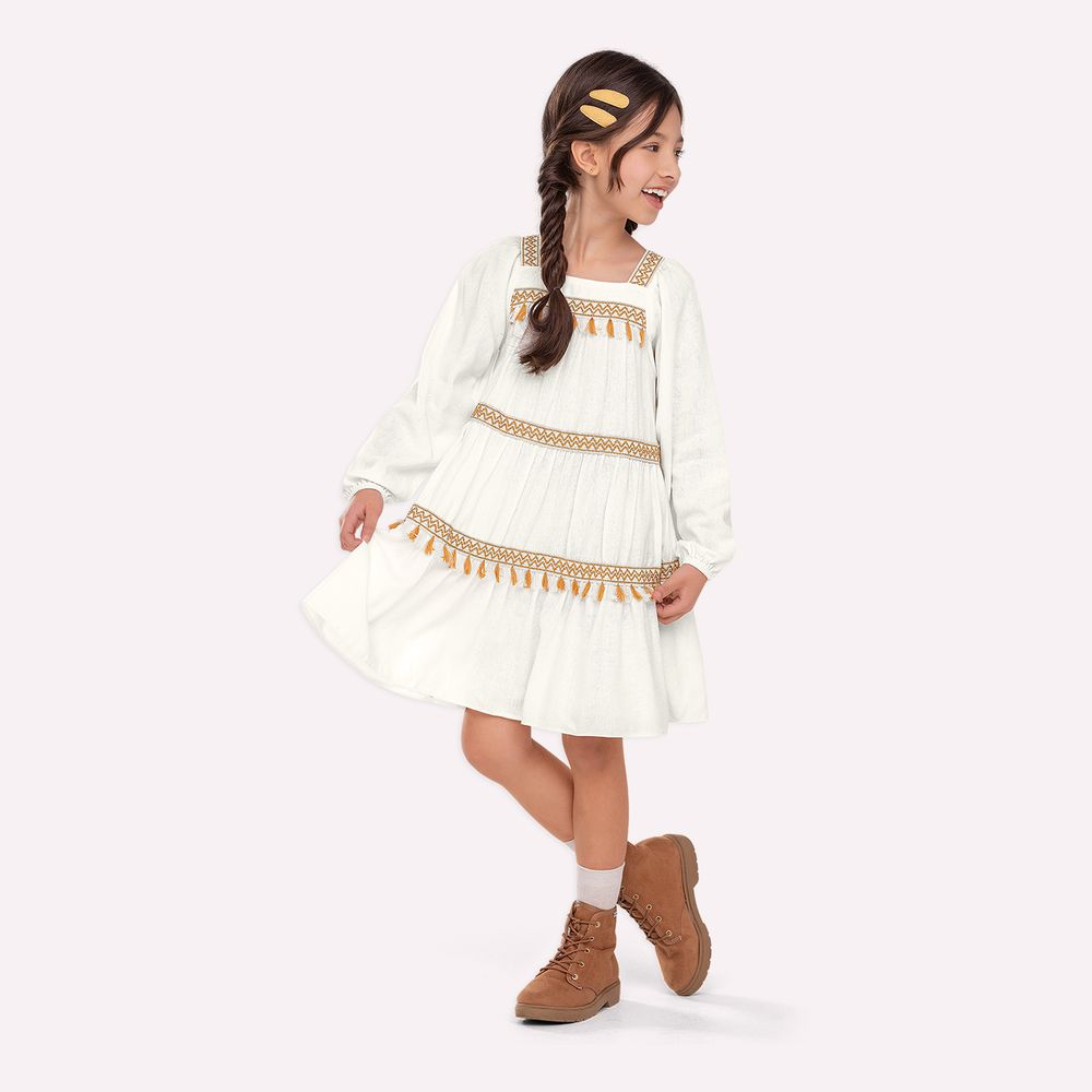 Um sopro de delicadeza que transforma qualquer ocasião em um momento especial. O vestido infantil menina Nanai é a expressão perfeita de elegância suave, combinando textura refinada, modelagem encantadora e acabamentos cuidadosamente elaborados.