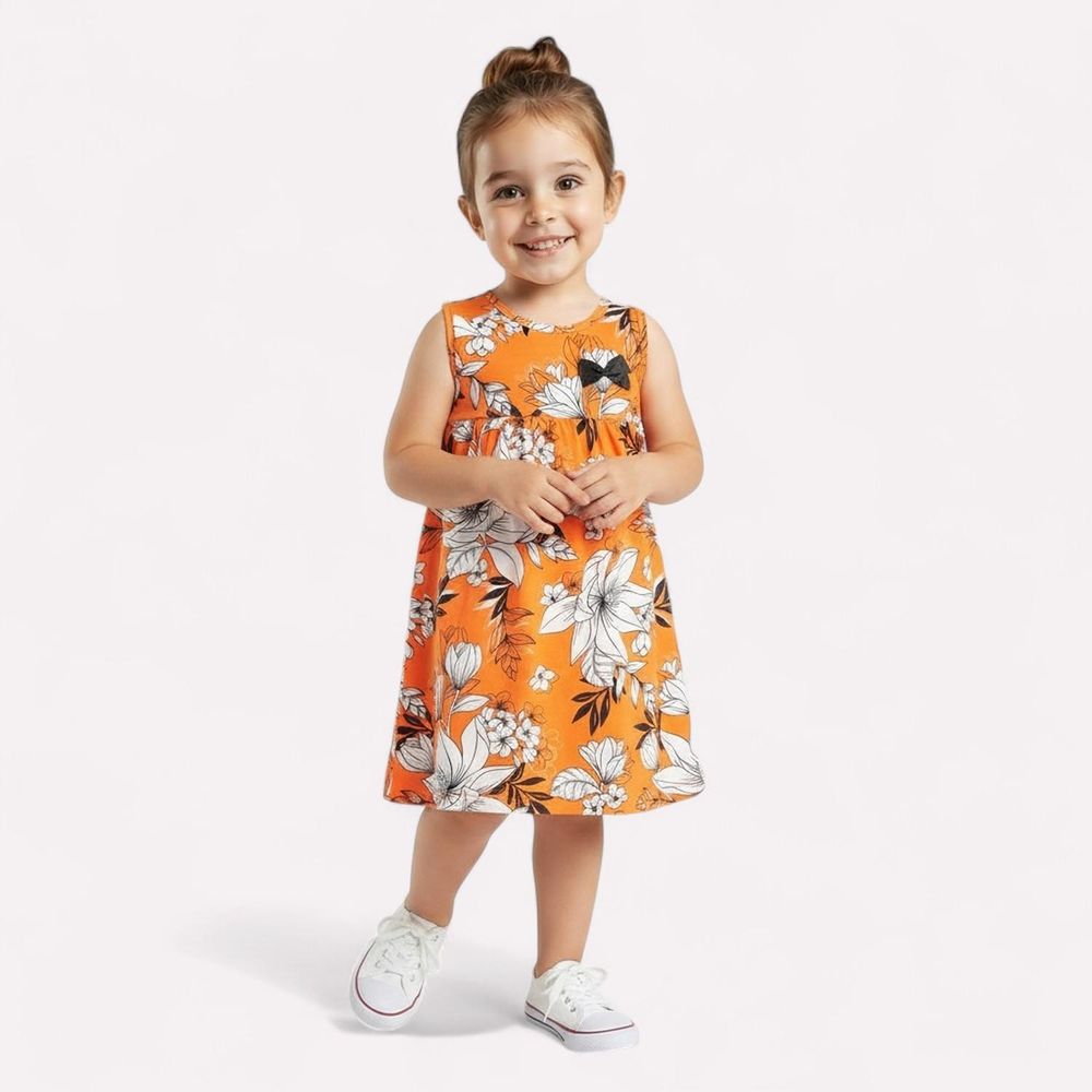 Delicado e cheio de energia, este vestido infantil menina Kyly é confeccionado em meia malha 100% algodão, trazendo conforto e suavidade para a pele da criança. O modelo superior regata com caimento evasê apresenta estampa alegre que mistura de elementos gráficos, criando um visual vibrante.