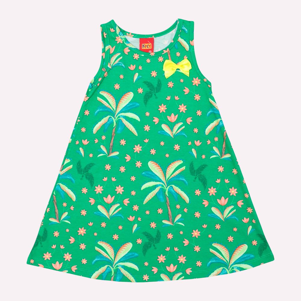 Inspirado no clima das praias tropicais, o vestido infantil Kyly é feito em meia malha 100% algodão, proporcionando frescor e conforto.