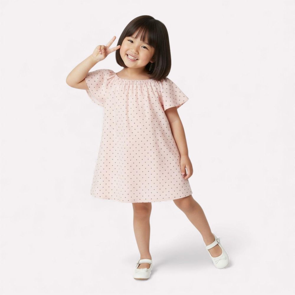 O vestido infantil Milon é confeccionado em tricoline mahdi 100% algodão, um tecido leve e macio que garante frescor e conforto durante todo o dia. Sua modelagem soltinha com saia evasê oferece movimento gracioso, enquanto o franzido no decote em elástico adiciona charme extra ao caimento.